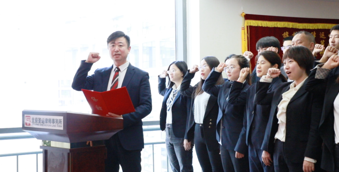 北京圣运律师事务所会议室内,圣运律师面向国旗庄严宣誓,律所党支部书记刘晓刚律师领誓。希望通过重温宣誓词,进一步增强律师荣誉感和使命感,推动宪法精神落地生根。也希望每位圣运人在生活点滴、工作细节中都不忘初心,不畏困难,在追逐法治的道路上努力奋斗。