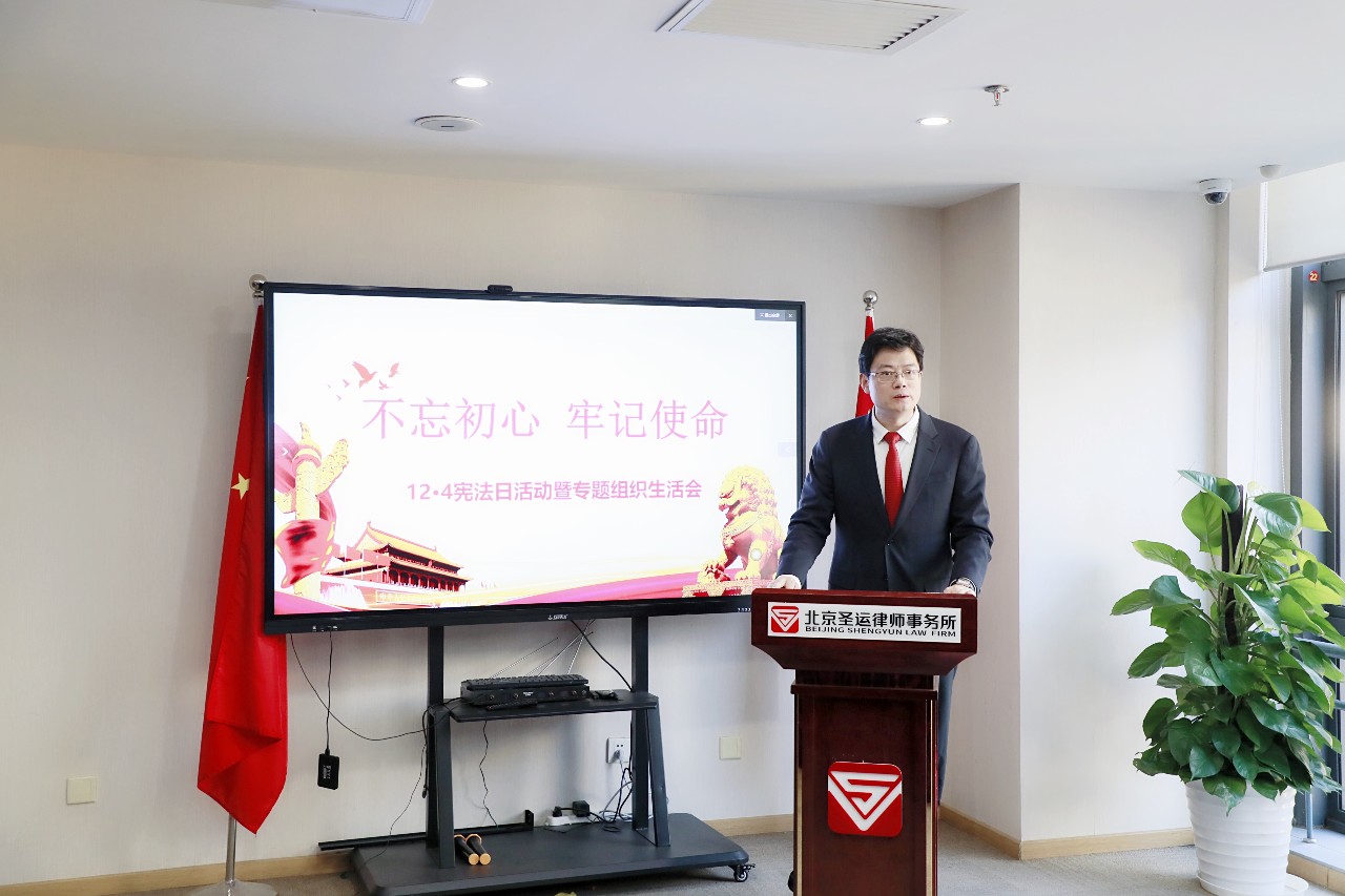 2019年12月4日是第六个"国家宪法日",为贯彻落实中宣部、司法部、全国普法办以"弘扬宪法精神,推进国家治理体系和治理能力现代化"为主题的"宪法宣传周"活动,进一步增强律师的职业使命感、荣誉感和社会责任感,北京圣运律师事务所举办"国家宪法日"系列主题宣传活动。