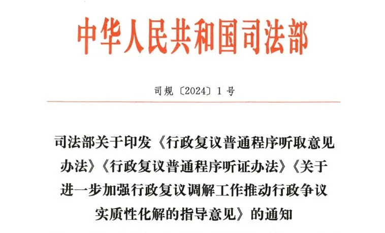 司法部关于印发《行政复议普通程序听取意见办法》《行政复议普通程序听证办法》《关于进一步加强行政复议调解工作推动行政争议实质性化解的指导意见〉的通知