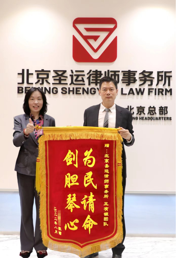 在圣运律师紧锣密鼓的借助下,通过协商,杜先生最终获得了补偿款180余万元,杜先生也特地向圣运律师送上锦旗,称赞律师"剑胆琴心,为民请命!"