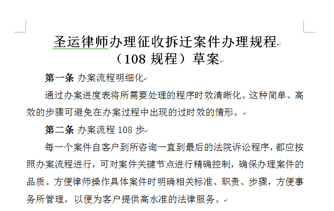 文章简介:圣运标准,中国行政律师办案实践的标准如何在征地拆迁维权过程中用最高效、最便捷、最可靠的法律程序进行推进?       如何将多年来行政法领域内的办案经验形成规范机制加以推广?       如何将一个人的智慧融入整个集体,将集体的智慧集中成最