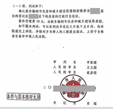 法院经审理后,认可圣运律师的意见,判决确认榆树市住房和城乡建设局强制拆除张先生房屋的行政行为违法。该结果奠定了张先生下阶段维权的基础,期望圣运律师能协助张先生尽快取得维权成功。