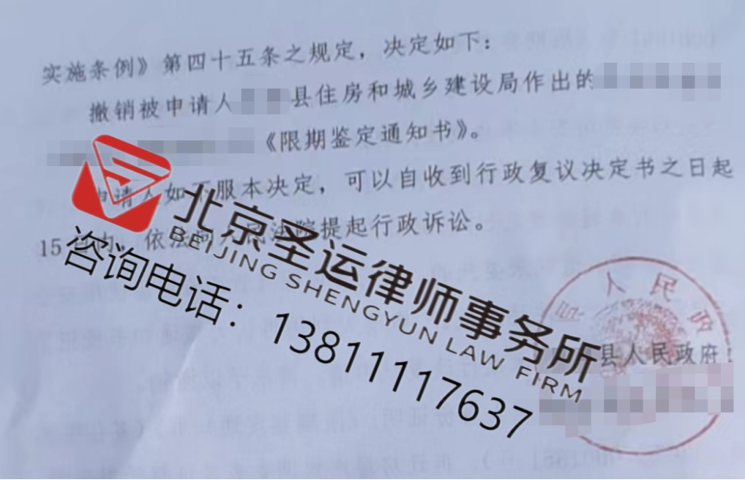 在圣运律师的协助与推进下,复议机关认可了圣运律师的意见,撤销了县住建局作出的《限期鉴定通知书》。