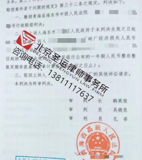 法院经审理后,认可圣运律师的意见,判决撤销了一审不合理的行政赔偿判决,判决区政府在判决生效之日起60日内赔偿砖厂的经济损失并给付相应利息。