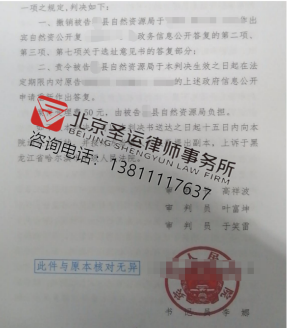 法院经审理后,认可圣运律师的意见,判决撤销县自然资源局作出的答复中涉及选址意见书的答复部门,并责令县自然资源局于判决生效之日起在法定期限内对曲女士等人的上述政府信息公开申请重新作出答复。