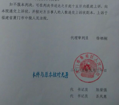 圣运捷报:诉厦门市集美区发改局胜诉