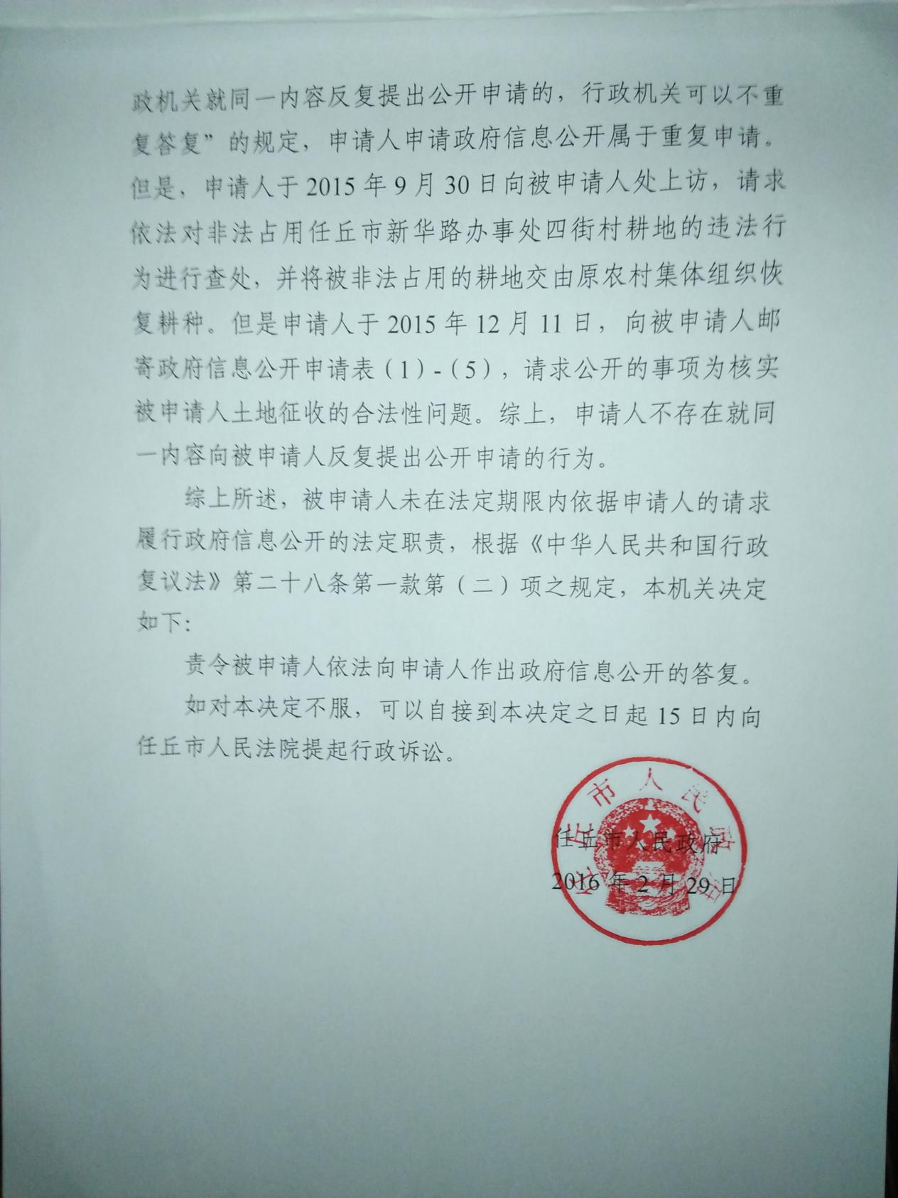 文章简介:河北农村土地征收案例:政府拒绝信息公开怎么办?【案情简介】    梁女士是河北省任丘市新华路办事处四街村的村民,在该村拥有合法承包的土地,一家人依靠种植庄稼换取微薄收入。然而,2015年9月,在未出示任何合法手续,未经任何事先告知的前提下,