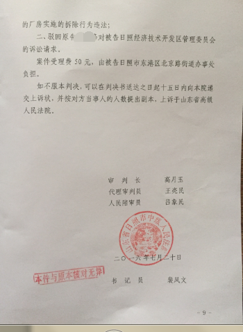 圣运捷报:诉讼胜山东省日照市东港区北京路街道办事处