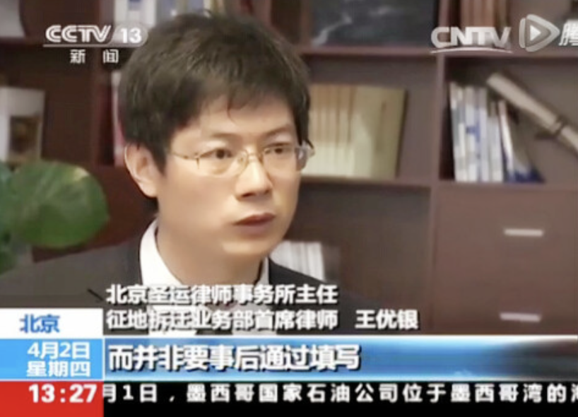 圣运律师事务所主任,中国传媒大学法学兼职教授、研究生导师,征地拆迁业务部首席大律师,近二十年法律服务经验,行政法实务专家。因在征地拆迁领域的突出贡献,多次被中央电视台CCTV新闻频道、CCTV财经频道、人民日报、法制日报、人民政协报、南方都市报、财新网、香港有线电视台、亚洲周刊、英国BBC电台等数百家中外媒体采访报道。《中国律师》杂志、《中国律师网》特邀评论员,《第一视频》特邀评论员,参与立法活动,为多个行政立法活动提供建议和意见。 荣获"2013年度中国十大最具影响力律师"、"2015年度最受媒体欢迎律师"等称号。